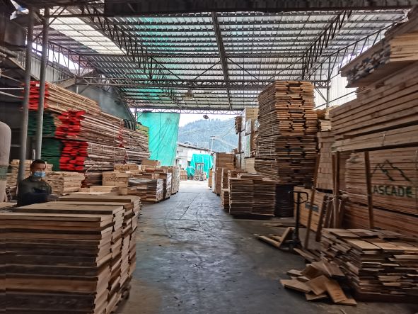 企業(yè)地址為浙江省杭州市臨安區(qū)昌化鎮(zhèn)九龍村七井巖1號,企業(yè)主要建筑物分布在兩個片區(qū),東片區(qū)和西片區(qū)相隔一條鄉(xiāng)道Y462,片區(qū)內所有廠房、倉庫、輔助用房采用鋼棚連成一片。企業(yè)主要生產工藝包括原木開料、板材烘干、刨車成型、精加工、打孔、拋光、打磨、砂光、檢驗、包裝、入口等,不同的產品工藝略有差別。