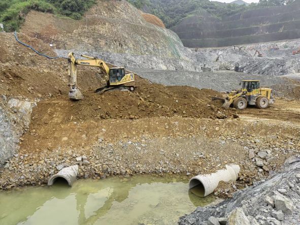 杭州順林建材有限公司富陽市淥渚鎮新浦村東山建筑用砂巖礦因開采剝離土及破碎加工后濾餅無處堆放,故礦山擬先行對礦區中部西側+16m水平以上礦體先行開采,形成+16m凹陷采坑后設置排土場,礦山開采結束后,對排土場內堆置物進行回采,部分跟表土混合后可作為宕底平臺復綠使用,其余外運處理,排土場消除。