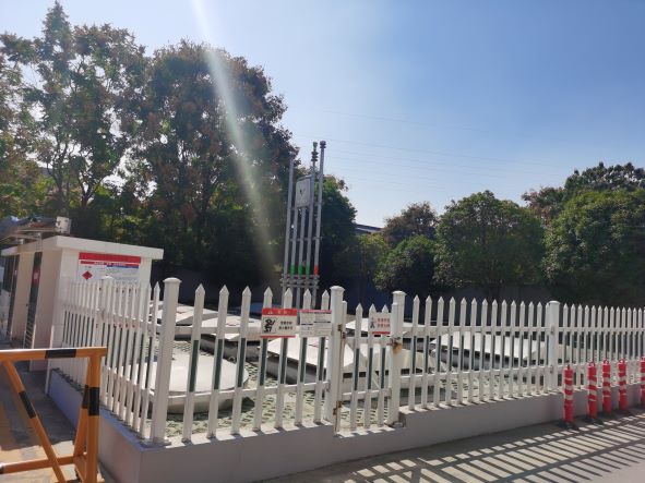 加油區(qū)設(shè)置加油罩棚,罩棚下設(shè)置2臺(tái)三油品六槍潛油式加油機(jī)(92#、95#、98#)和2臺(tái)雙油品四槍加油機(jī)(92#、95#和92#、0#);埋地罐區(qū)設(shè)有3個(gè)容量為30m3的92#、95#、98#埋地臥式SF型雙層汽油罐,1個(gè)容量為30m3的0#埋地臥式SF型雙層柴油罐,折算后油罐總?cè)莘e105m3(柴油罐折半計(jì)入),依據(jù)《汽車加油加氣加氫站技術(shù)標(biāo)準(zhǔn)》GB50156-2021第3.0.9條辨識(shí),該站屬于二級(jí)加油站。加油站已安裝汽油卸油和加油油氣回收系統(tǒng)。