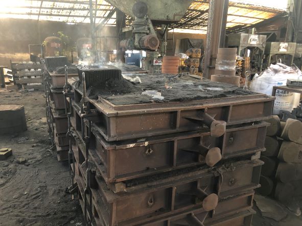 該企業主要生產鐵鑄件,生產過程中主要涉及制模、熔煉、吊運、澆鑄、浸漆、焊接切割等作業,主要生產設備為造型機、射芯機、中頻爐、澆包、拋丸機、起重機等,主要生產原料為廢鐵、生鐵、硅鐵、錳鐵等。