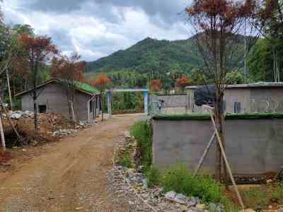 在后續的設計過程中,為了便于設備運行,降低采礦成本,龍泉市砩礦有限責任公司對該礦的開拓系統進行了變更,由原先的豎井—斜井開拓改為斜坡道開拓。2022年4月,龍泉市砩礦有限責任公司委托華東勘測設計研究院有限公司編制了《浙江省龍泉市八都鎮章府會礦區螢石礦5萬噸/年采礦工程初步設計》(初步設計開拓方式為斜坡道開拓,斜坡道布置于村道北側1~J1號勘探線之間,坐標X=3097776.786,Y=40393085.859,Z=+296m)和《浙江省龍泉市八都鎮章府會礦區螢石礦安全設施設計》。2022 年 12 月 22 日,龍泉市應急管理局以(龍)應急礦山項目設批字〔2022〕03 號下發了《非煤礦山建設項目安全設施設計許可意見書》,同意礦山進行基建工,核定基建期 21個月(1.8年)。礦山自2023年初開始進行基建工作,主要進行前期土地政策處理、老采坑清理和地面工業場地的建設工作。建設過程中發現初步設計確定的斜坡道硐口位置殘坡積層較厚且近地表巖層破碎,2023年3月業主委托浙江佳途勘測設計有限公司編制了《浙江省龍泉市八都鎮章府會礦區螢石礦進洞口巖土工程勘察報告》,得出開發利用方案設計豎井硐口和初步設計斜坡道進硐口段屬Ⅴ級圍巖,無自穩能力,成硐條件差,不適宜作為螢石礦的進硐口。為此,采礦權人對原設計斜坡道硐口位置進行了調整,現斜坡道硐口已布置在村道北側20m位置(坐標 X=3097731.82,Y=40393109.58,Z=+286.4m),斜坡道已開口向下施工了約80m。