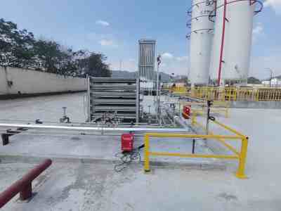 杭州豐誼達(dá)銅業(yè)有限公司廠區(qū)東北側(cè)設(shè)有1座LNG氣化站,用地面積3596㎡,主要建構(gòu)筑物為站區(qū)圍墻、值班室、儲(chǔ)罐防火堤、消防水池及泵房等。LNG氣化站規(guī)模為200m³,主要設(shè)備包括:2個(gè)100m³LNG儲(chǔ)罐,2個(gè)4000Nm³/h主氣化器(一用一備),2個(gè)1500Nm³/h主氣化器(一用一備),2個(gè)儲(chǔ)罐增壓撬,1個(gè)卸車增壓撬,1個(gè)EAG加熱氣化器,1個(gè)氣化調(diào)壓計(jì)量加臭撬和1個(gè)集中放散管,主要為車間豎爐提供燃料。本項(xiàng)目LNG氣化站屬于城鎮(zhèn)燃?xì)忭?xiàng)目,適用于《城鎮(zhèn)燃?xì)夤芾項(xiàng)l例》