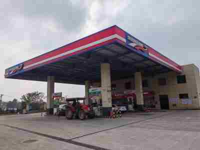 加油站設置汽油卸油和加油油氣回收系統。加油區設置加油罩棚,罩棚為輕鋼結構罩棚。罩棚下設置4臺雙油品雙槍自吸式加油機(汽油加油槍帶油氣回收);埋地油罐區設有4只埋地臥式SF雙層復合油罐(油罐均為車道罐),其中2只50m³汽油罐(分別為92#隔倉汽油罐1只,95#隔倉汽油罐1只),1只20m³汽油罐(儲存98#汽油)和1只30m³柴油罐(儲存0#柴油),折合油罐總容積為135m³(柴油罐容積折半計入),根據《汽車加油加氣加氫站技術標準》GB50156-2021的相關規定,該加油站為二級加油站。