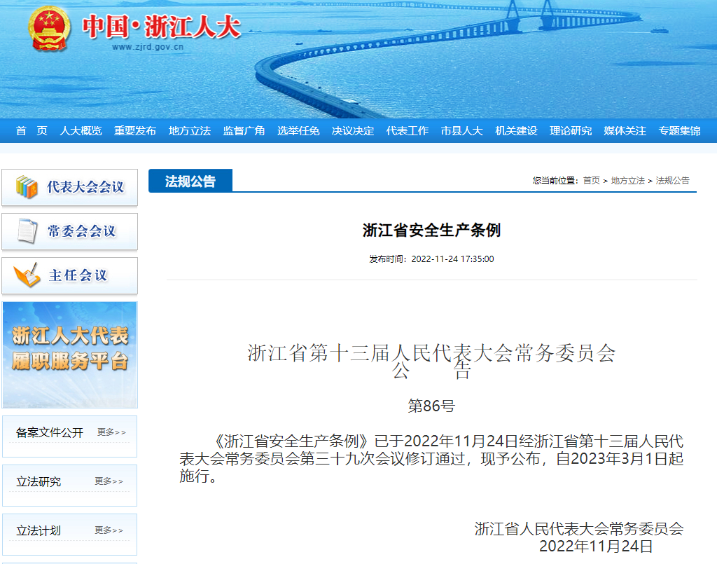 《浙江省安全生產(chǎn)條例》正式發(fā)布